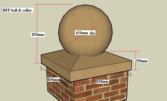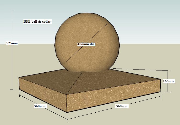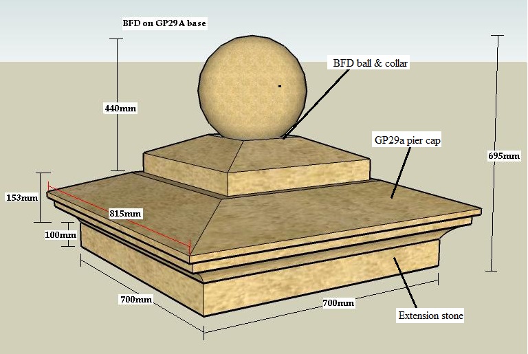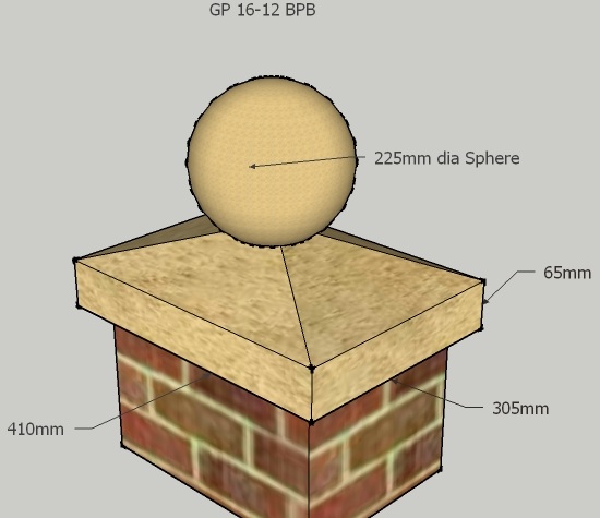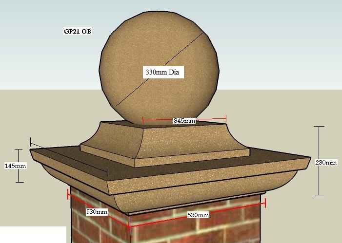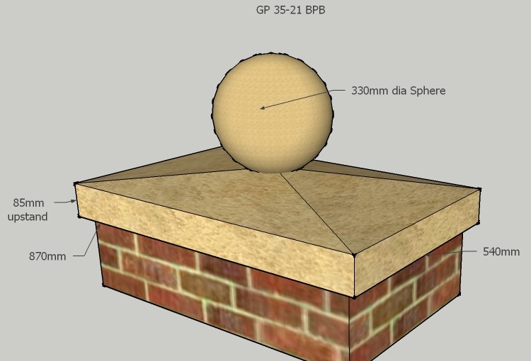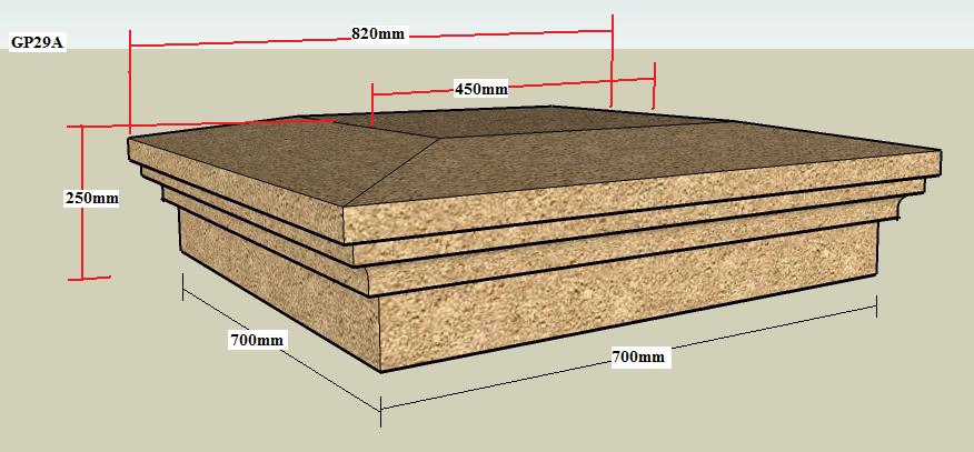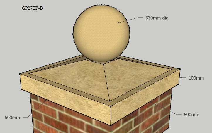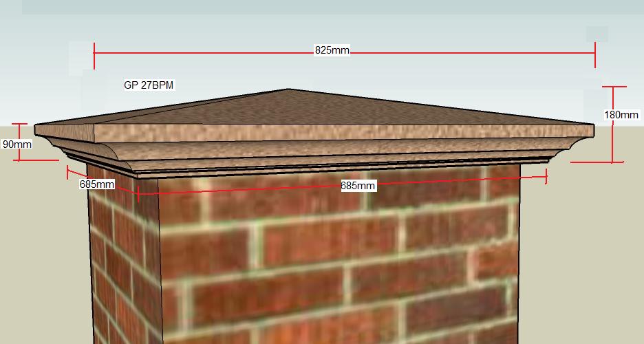 GP 27 BPM 685 x 685mm and is suitable for piers up to 670 x 670mm as the extended moulding to the side detail acts as the weather drip.