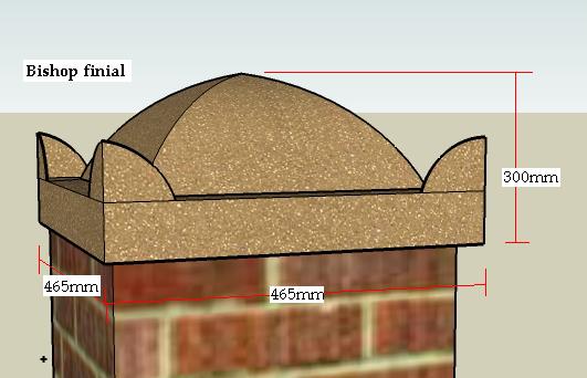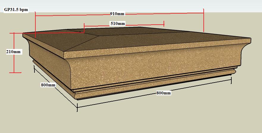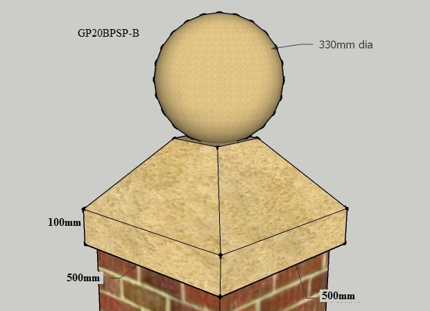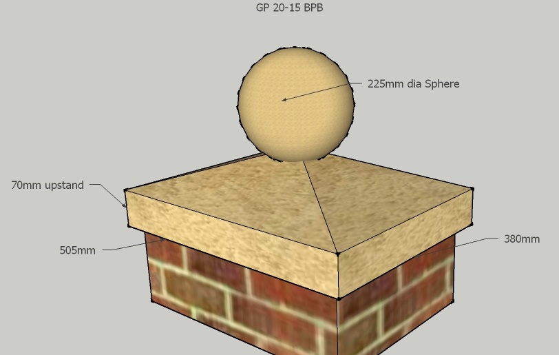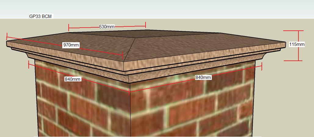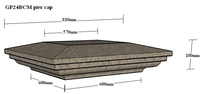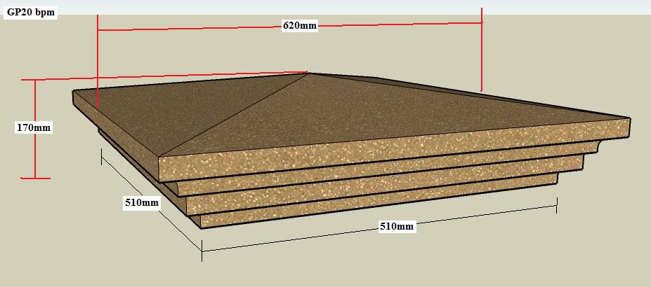 GP 20 BPM 510 x 510mm and is suitable for piers up to 500 x 500mm as the extended moulding to the side detail acts as the weather drip.