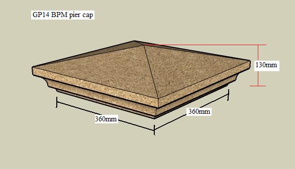 GP 14 BPM 360 x 360mm and is suitable for piers up to 350 x 350mm as the extended moulding to the side detail acts as the weather drip.