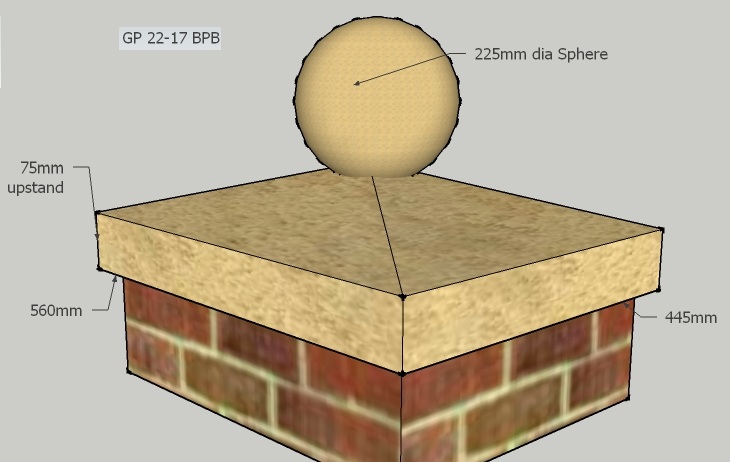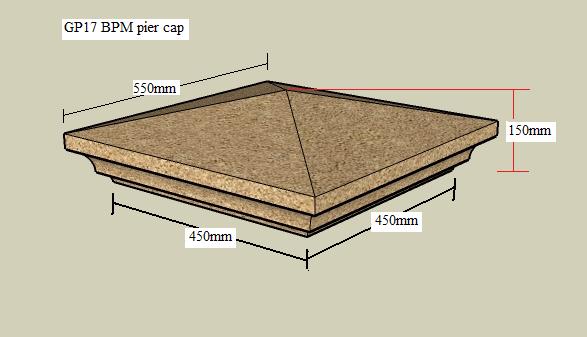 GP 17 BPM 450 x 450mm and is suitable for piers up to 440 x 440mm as the extended moulding to the side detail acts as the weather drip.