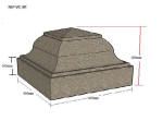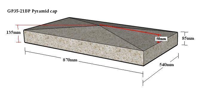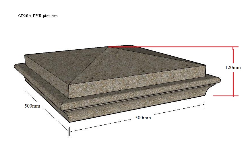Gp 20A-pyr 500 x 500mm and is suitable for piers up to 490 x 490mm as the extended moulding to the side detail acts as the weather drip.