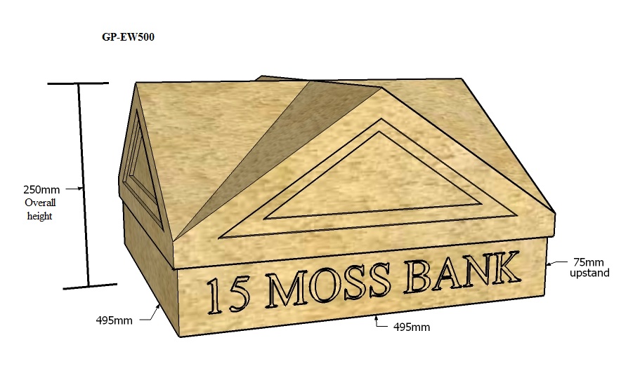 GP-EW500, a 495mm x 495mm square, suitable for pillar up to 450mm, can also have your house name v-cut in to the upstand