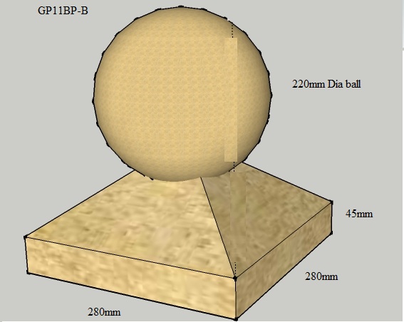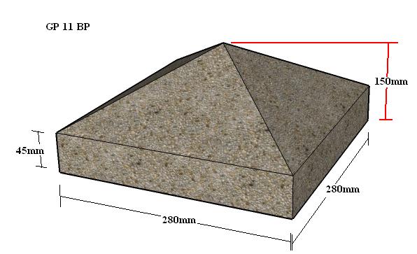 GP11 BP, Pyramid cap 280 x 280mm and suitable for pillars up to 230mm x 230mm allowing a 25mm overhang on each side