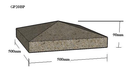 GP20 BP, Pyramid cap 500 x 500mm and suitable for pillars up to 450mm x 450mm allowing a 25mm overhang on each side