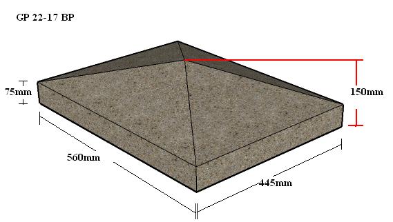 Gp 22A-pyr 560 x 560mm and is suitable for piers up to 550 x 550mm as the extended moulding to the side detail acts as the weather drip.