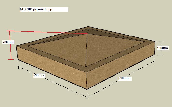 GP27 BP, Pyramid cap 690 x 690mm and suitable for pillars up to 640mm x 640mm allowing a 25mm overhang on each side