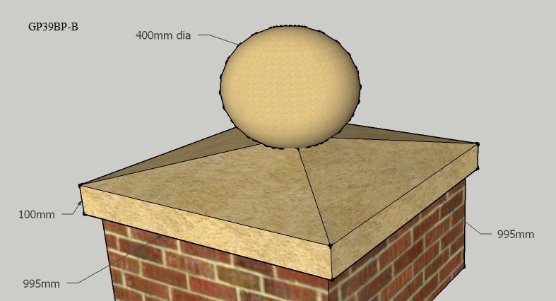 GP-39BP, a traditional pyramid pier cap at 995mm x 995mm, suitable for pillars up to 850mm, can also have your house name v-cut in to the upstand