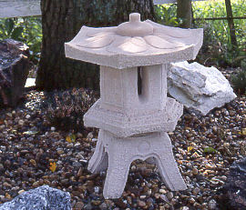 The Pillar lantern is shown in a bathstone finish, used extensively in oriental themed gardens, can be adapted to take outdoor lighting, available in seven stone finishes.