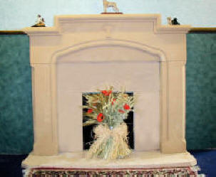 Our Kingsbury fire surround shown here with back panels and in a Bathstone finish, this is reproduction 17th century English  chimney piece, a large surround suitable for baskets or log burning stoves