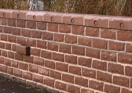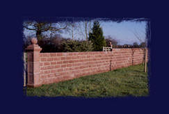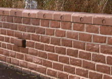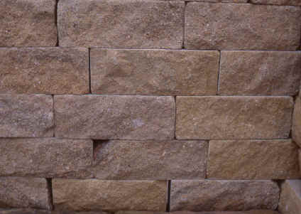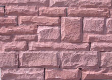 Composite stone walling in a red sandstone finish, coursed and dressed block sizes 300 x 150 x 150mm. available in seven regional stone finishes