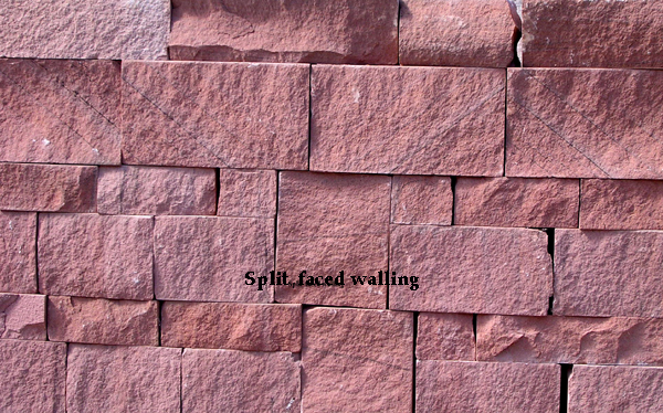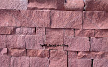 Natural stone split faced walling stone shown here in a red sandstone, this a more economica product to use and is priced to job.