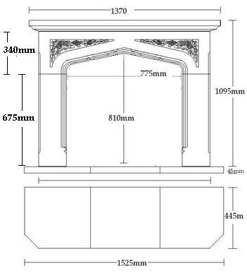 Height not including hearth is 1095mm (+ 50mm for hearth)