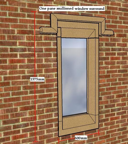 Our standard range of mullioned window surrounds are available in seven stone finishes or colour matched to existing masonry, the height can be adjusted by the length of the mullions if required with the hood moulding as shown in this diagram, optional.
