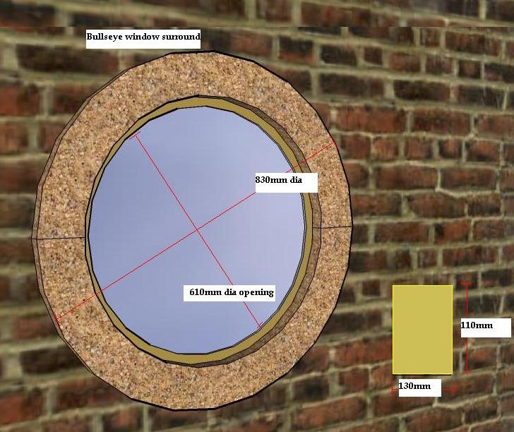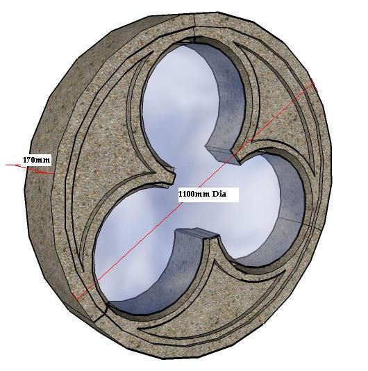 Our Trefoil window surround is available at 1100mm diameter and is available in seven stone finishes or colour matched to existing masonry. |