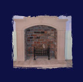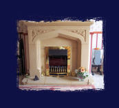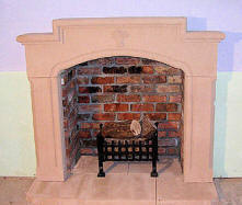A Fine example of a Tudor arched fire surround with recessed block work,  shown here in a composite Portland stone  finish.