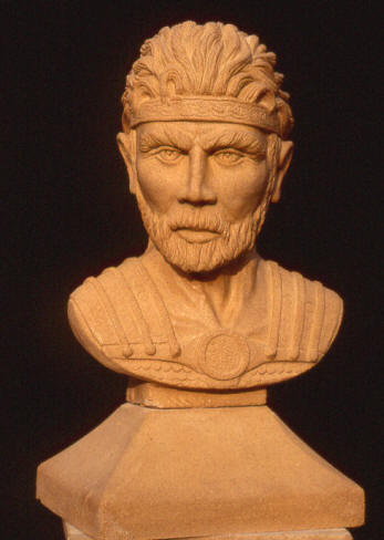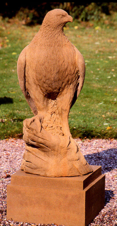A highly detailed sculpture commissioned and sculpted in house, shown here in our innovative two-tone stone, with the dragon in a Portland stone on a Moorland base
